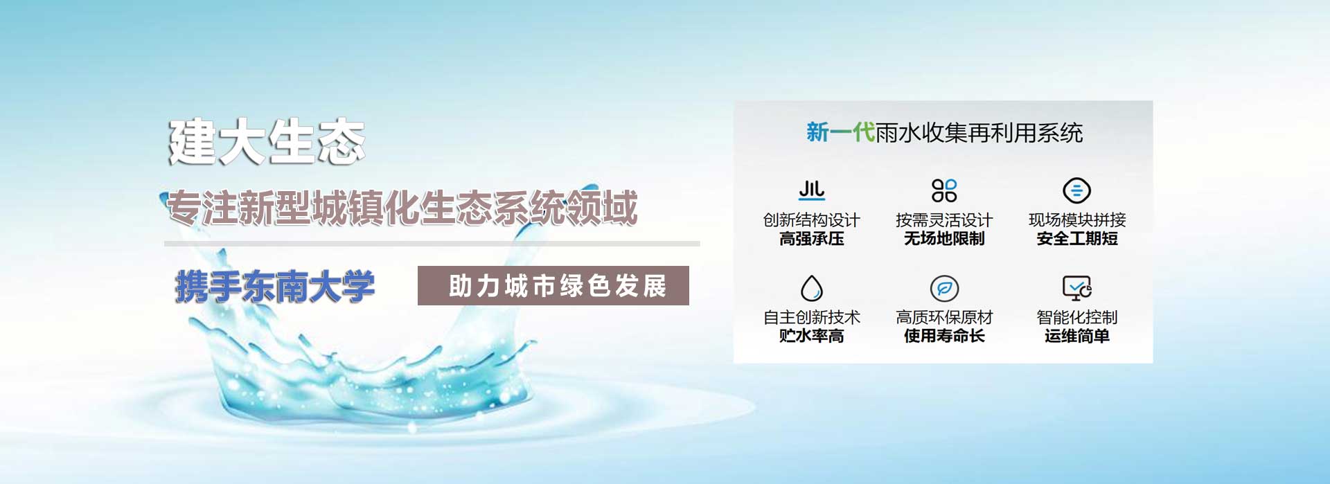 江蘇建大生態(tài)科技有限公司,是一家專注環(huán)保產(chǎn)業(yè)的高新科技企業(yè),主要業(yè)務(wù)范圍包含:海綿城市、雨水收集系統(tǒng)、PDS防護(hù)虹吸排水系統(tǒng)、純水處理設(shè)備、污水處理設(shè)備、一體化預(yù)制泵站、ALC加氣板等。公司研發(fā)團(tuán)隊(duì)與”東南大學(xué)”合作多年,具備前瞻性產(chǎn)業(yè)以及產(chǎn)品的設(shè)計與開發(fā)能力。我公司一直以穩(wěn)定至優(yōu)的產(chǎn)品和良好的企業(yè)信譽(yù),取得了廣大客戶的信任。公司所有產(chǎn)品均通過內(nèi)部質(zhì)量標(biāo)準(zhǔn),強(qiáng)大的生產(chǎn)能力和高精的檢測手段,以客戶滿意為中心,不斷追求創(chuàng)新!